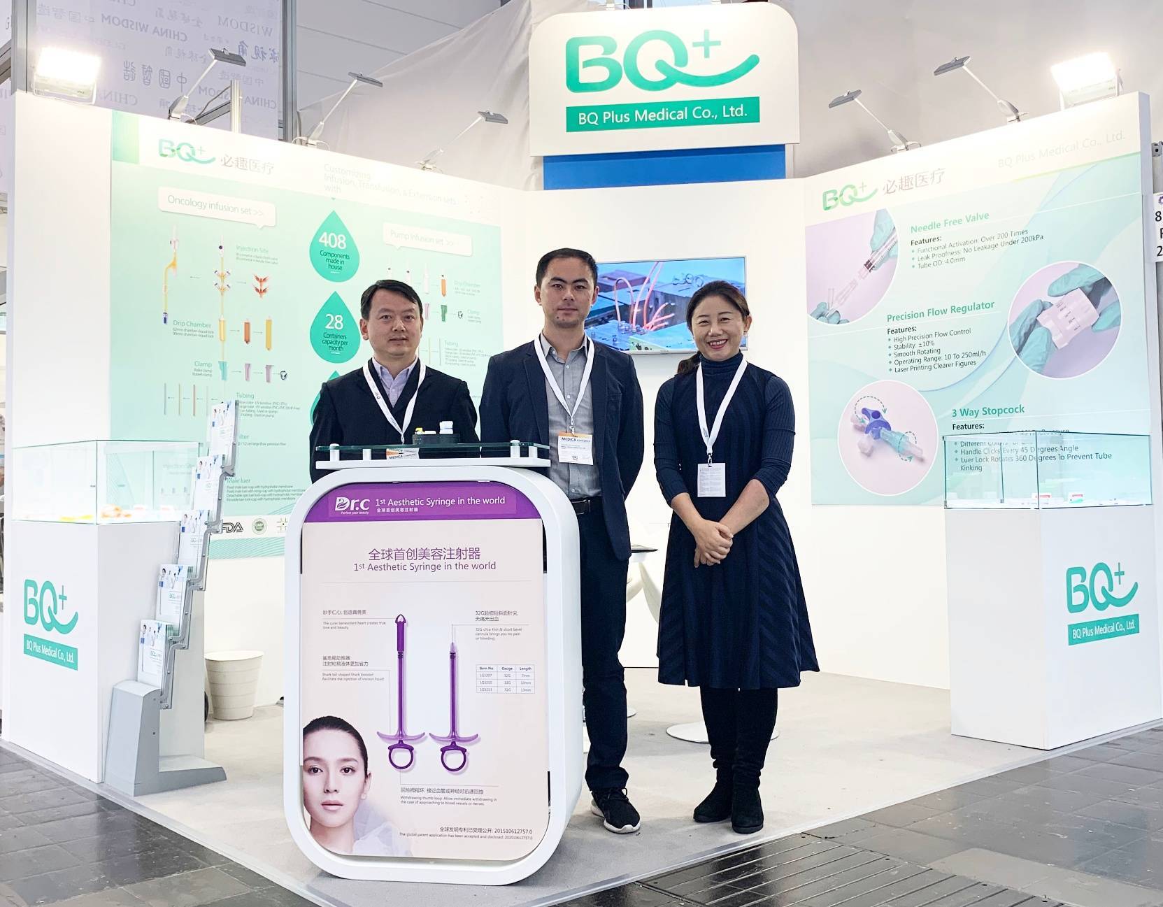 在BQ +品牌創始人的8bp23展位上,曹女士帶領公司負責歐美市場的銷售團隊如期參加了一年一度的德國醫藥展,為客戶提供免費的解決方案,技術解答和樣品。